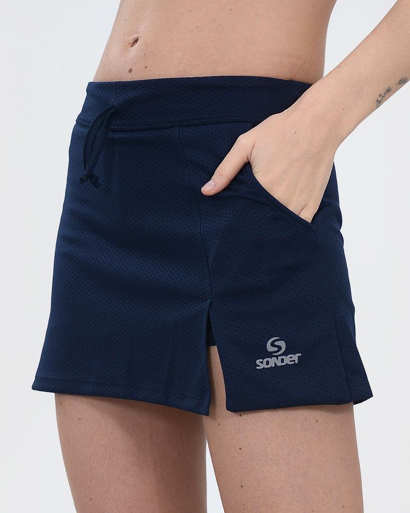Pollera short Fantasía AZUL MARINO BASICO C/CINTURA PIJAMA Y BOLSILLOS