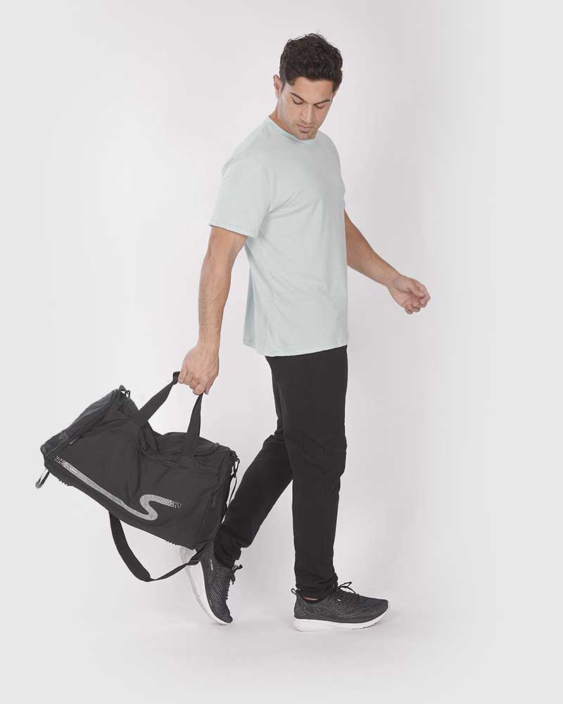 Bolso deportivo grande de 55 Lts en tela ripstop repelente al agua. Múltiples compartimentos y correa regulable acolchada. Ideal para entrenar o viajar. Características: Capacidad: 55 Lts. Medidas: 32x62x28 cm. Propiedades de la tela: Ripstop (anti desgarro) y repele el agua. Bolso con amplio compartimento central, con cierre de doble cursor apto candado. Con bolsillo interno con cierre. Cuenta con base semi rígida desmontable. Compartimento frontal con cierre y porta llaves. Bolsillo lateral con cierre de doble cursor, con bolsa y ventilación. Ideal para transportar calzado o ropa húmeda separada del contenido del interior. Bolsillo lateral con cierre. Asas de mano integradas con soporte acolchado reforzado que adhiere con abrojo. Incluye correa regulable desmontable con soporte acolchado antideslizante para hombro. Cinco soportes de goma para apoyo en la base del bolso. Tiracierres reforzados