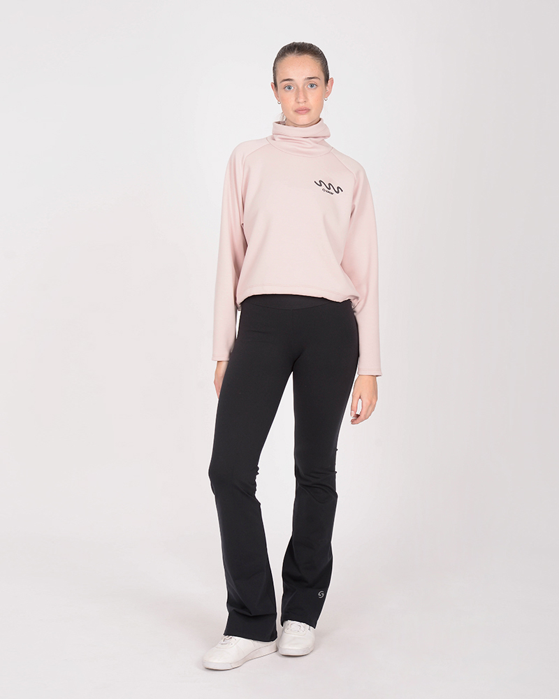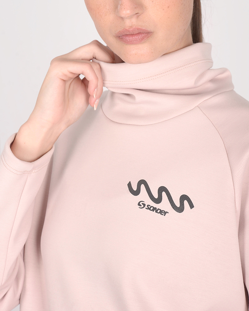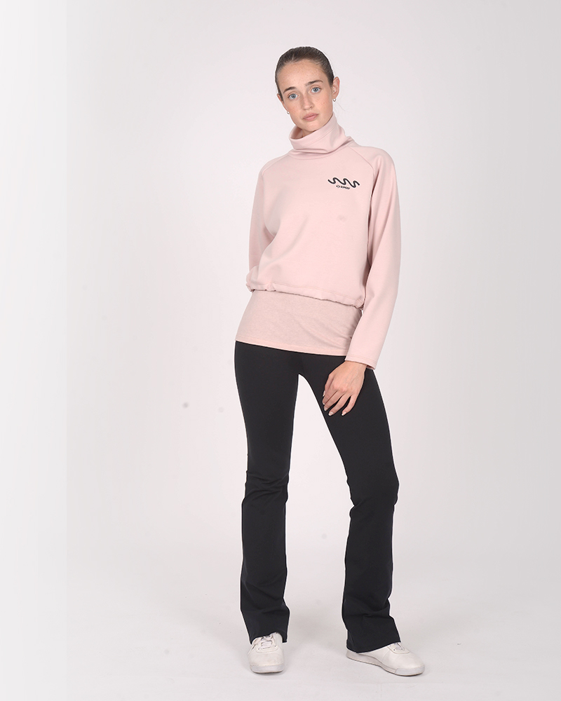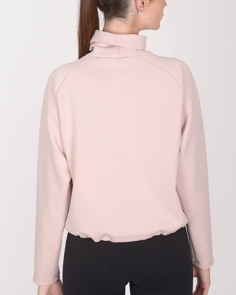 Buzo holgado con cuello alto de scuba elastizado rosa. El tacto de la scuba es suave y tiene el interior con frisa liviana.