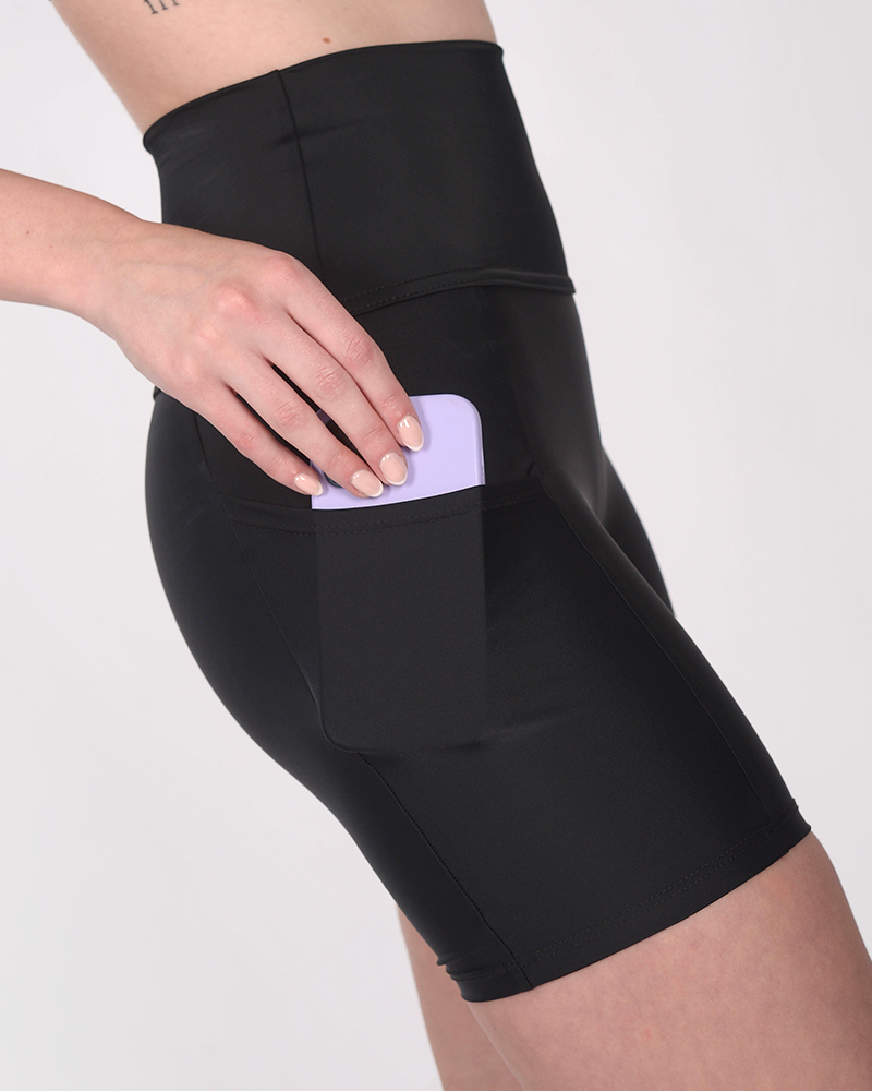 Ciclista corta sin tiro de LYCRA negra con bolsillo
