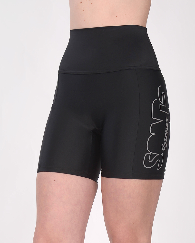 Calza ciclista corta de LYCRA de seda negro. Con cintura faja más alta, sin tiro y con bolsillo.