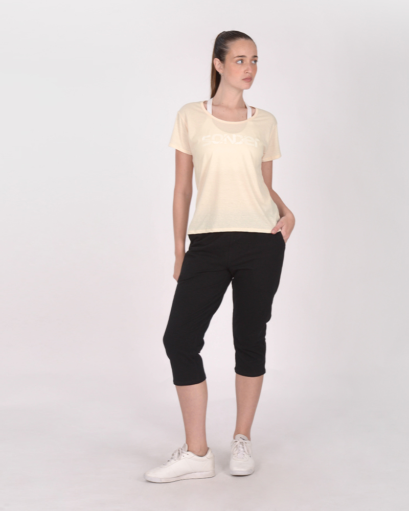 Capri de rústico flamé elastizado negro, con bolsillos y cintura elastizada.