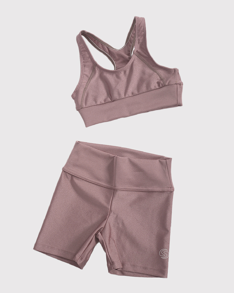 Ciclista de niña de LYCRA metalizada rosa viejo