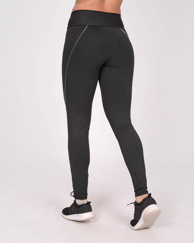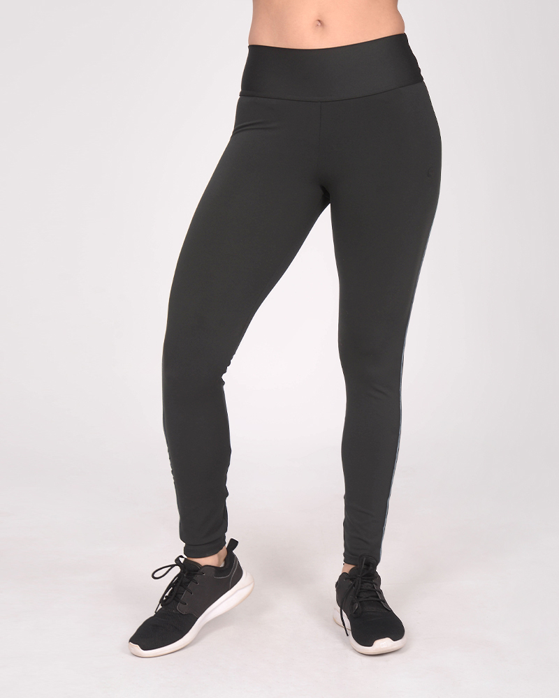 Calza larga de LYCRA opaca Transblock negra. Con cintura faja vivos estampado Rastro Verde. La tecnología Transblock es de compresión alta, tacto suave, opaca y de mayor respirabilidad.