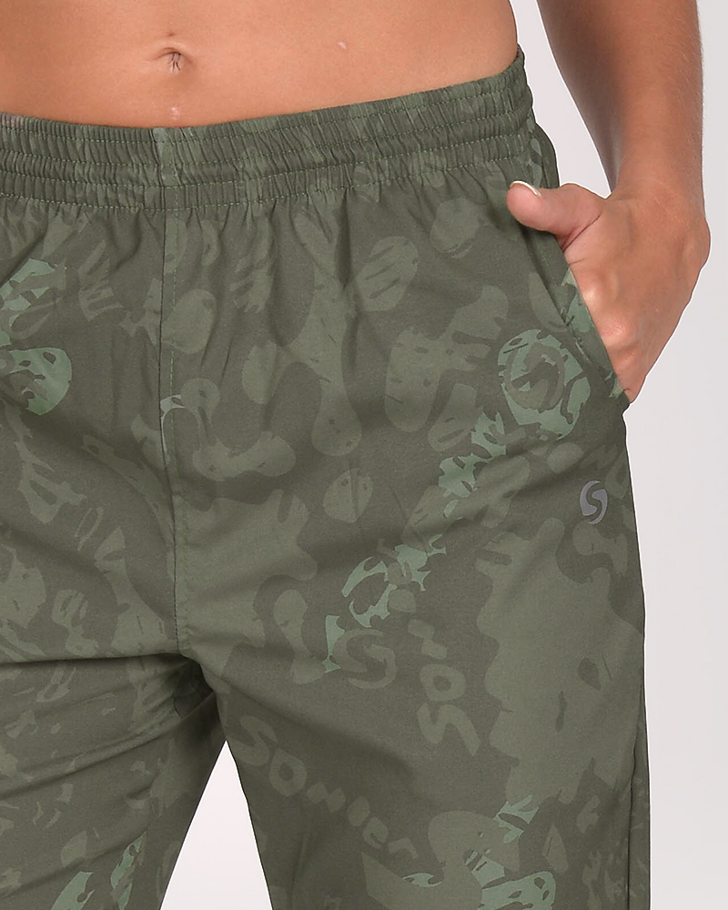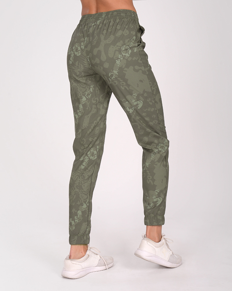 Pantalón largo de microfibra elastizada estampada Senda Camo. Con cintura elastizada, bolsillos y puños.