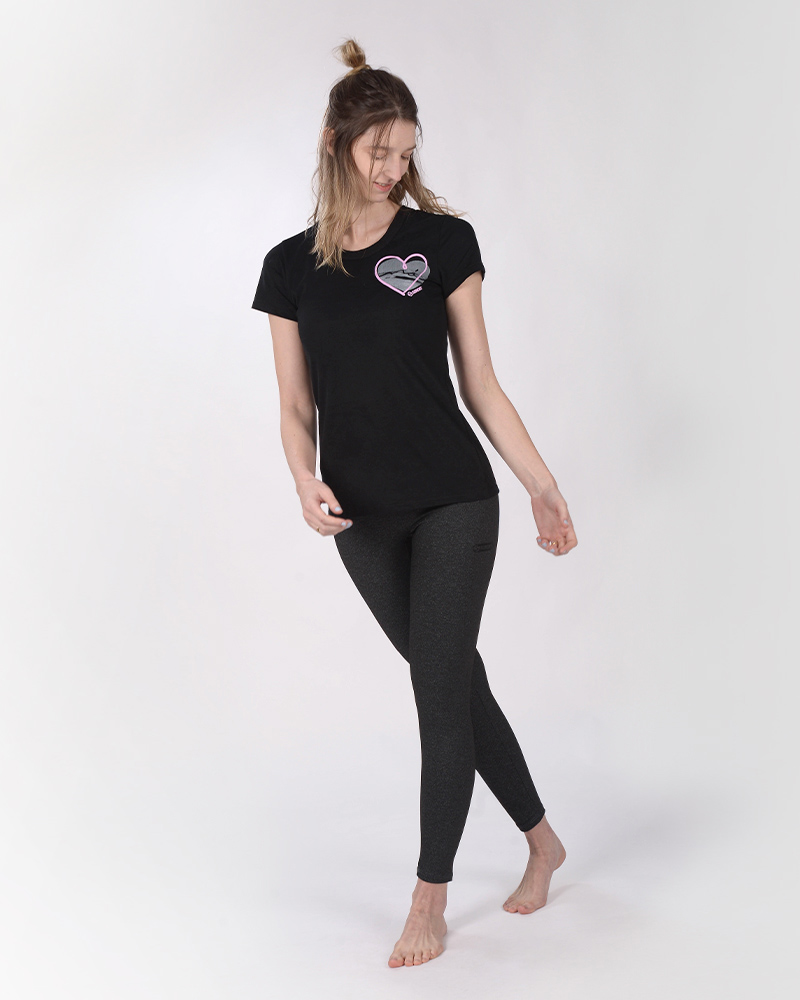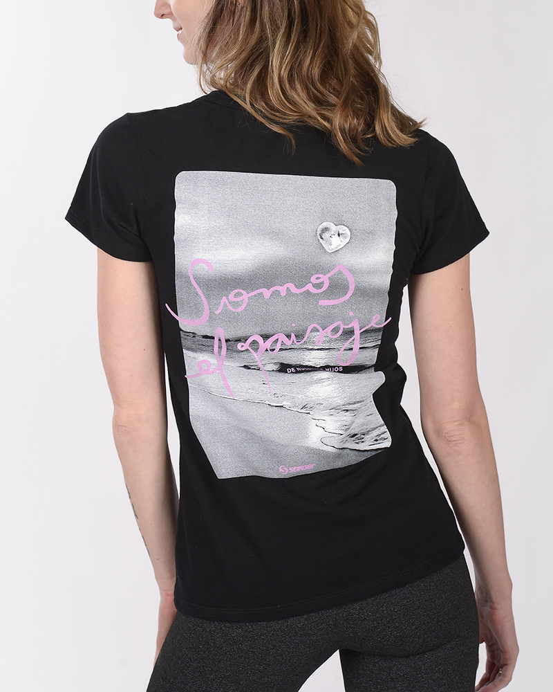 Corte clásico, de jersey de algodón, color negro con estampa en en frente y espalda.