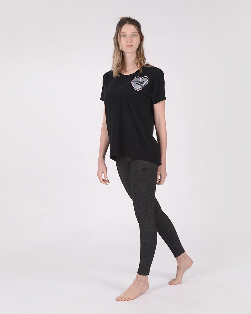 Corte holgado, de jersey de algodón, color negro con estampa en en frente y espalda.