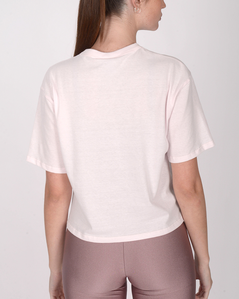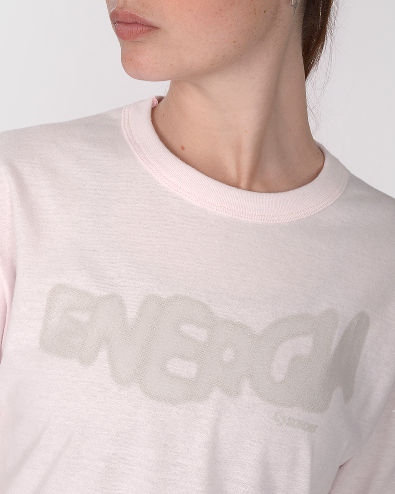 Remera oversize corta de jersey rosa con estampa energía.