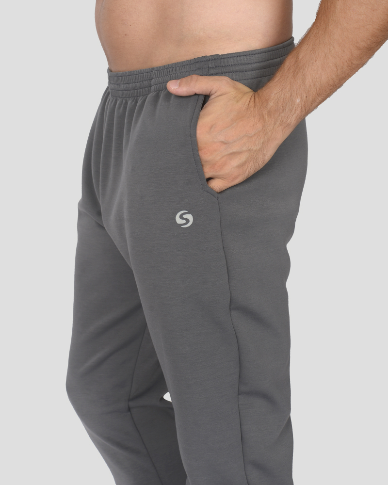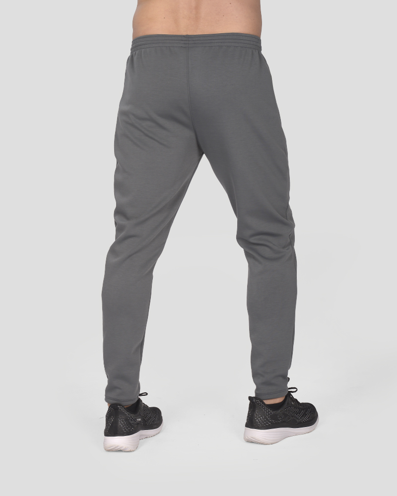Pantalón chupín de scuba elastizado gris plomo, con bolsillo. La scuba es abrigada, su tacto es suave y tiene el interior con frisa liviana.
