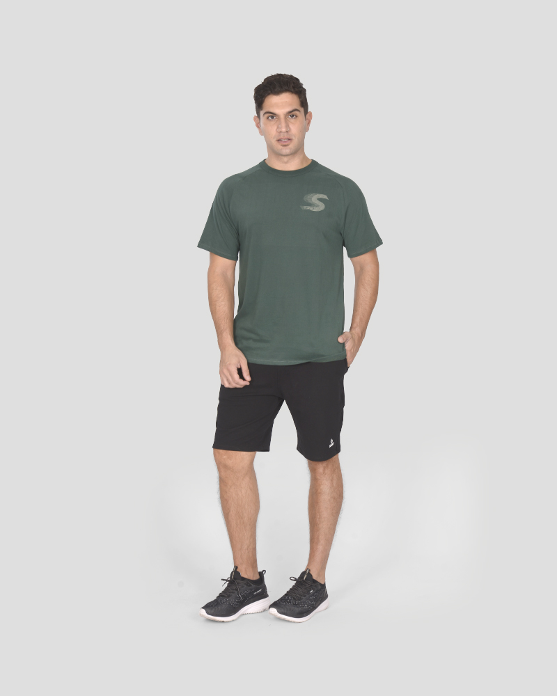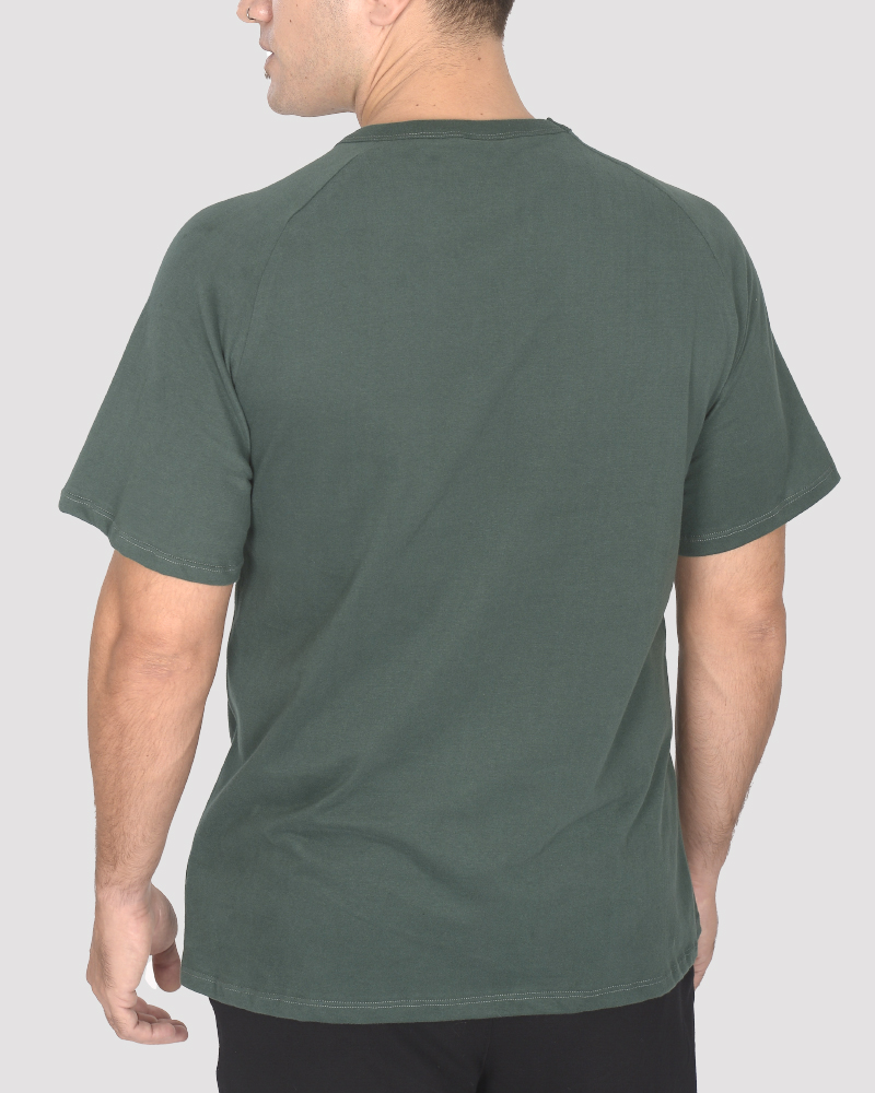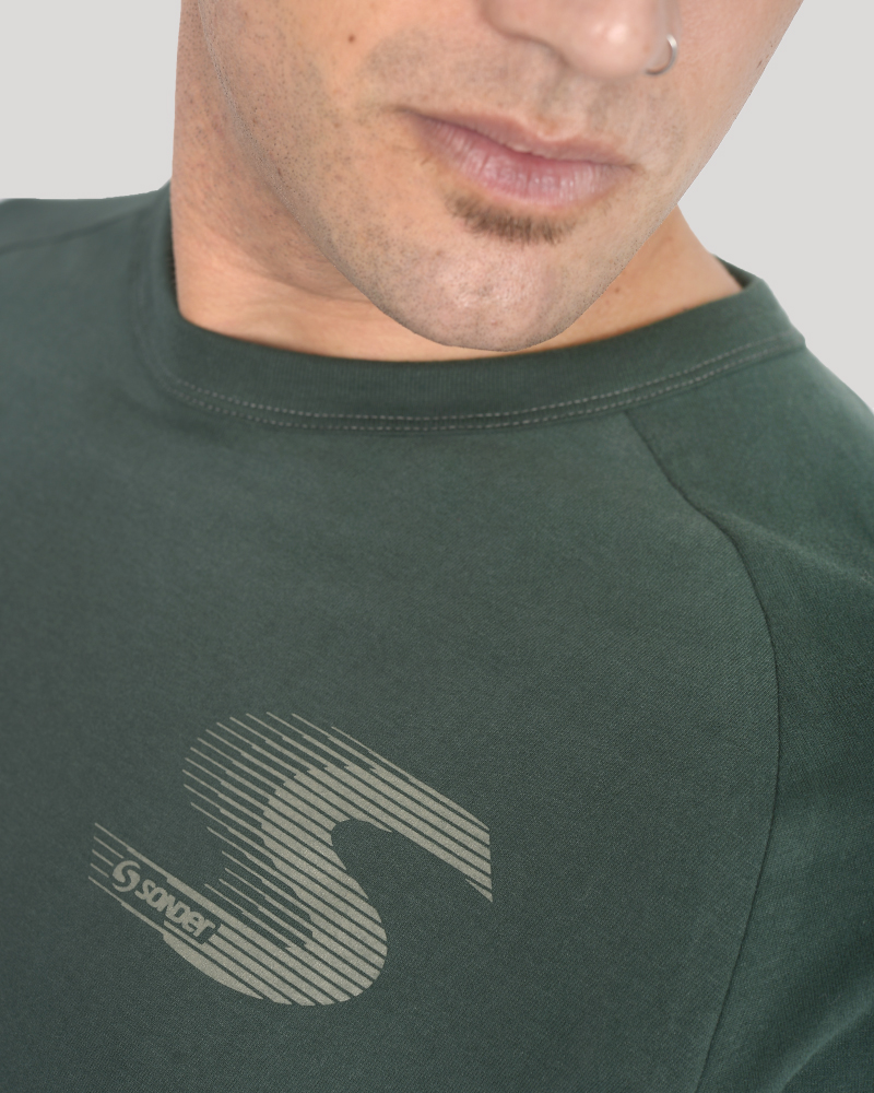 Remera clásica de jersey verde noche, con estampa.