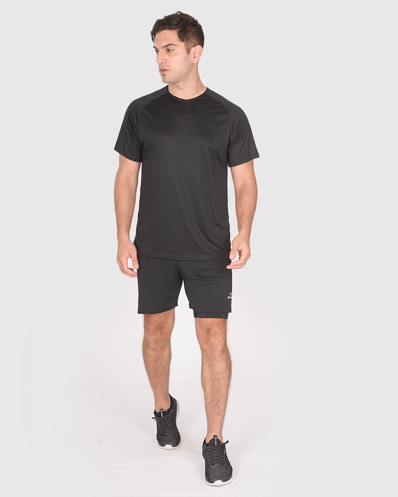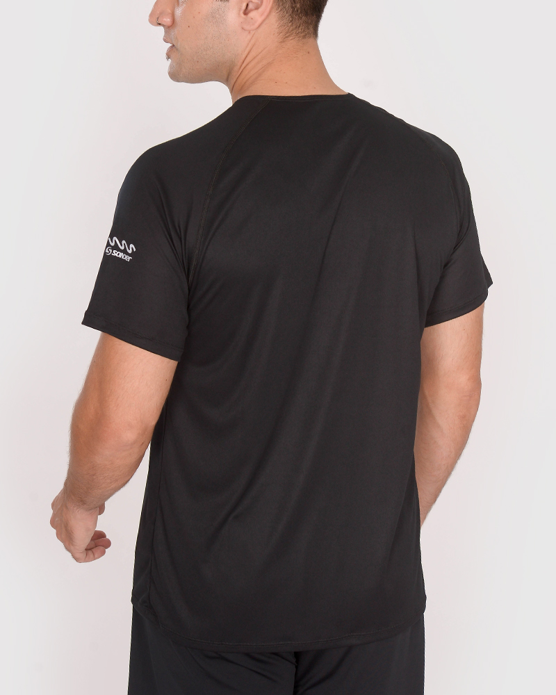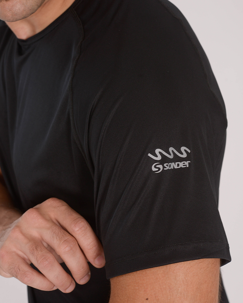 Remera clásica de micropoliéster NEODRY negro, con costura bordada y estampa.