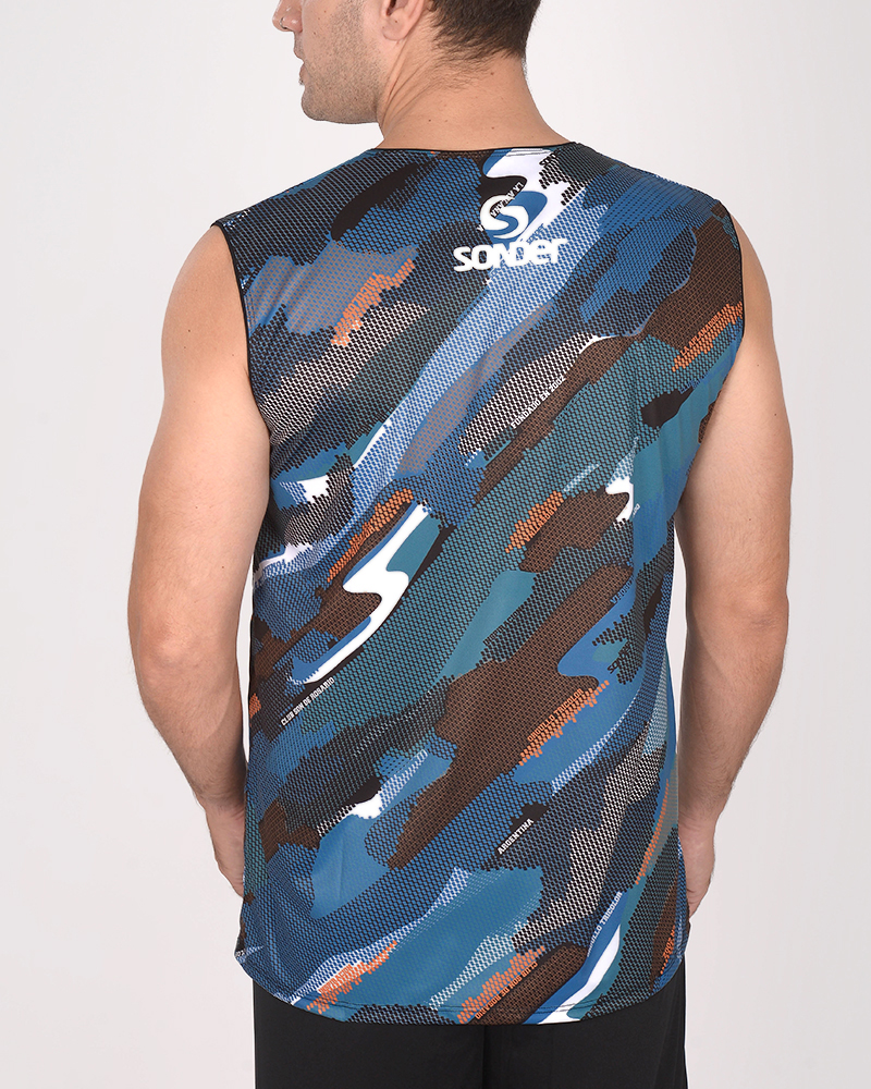 INDUMENTARIA OFICIAL CLUB SONDER ENTRENAMIENTO 2026. Musculosa unisex de poliéster estampado "Tramo Tricolor". Con estampa, cuello en V y vivos.