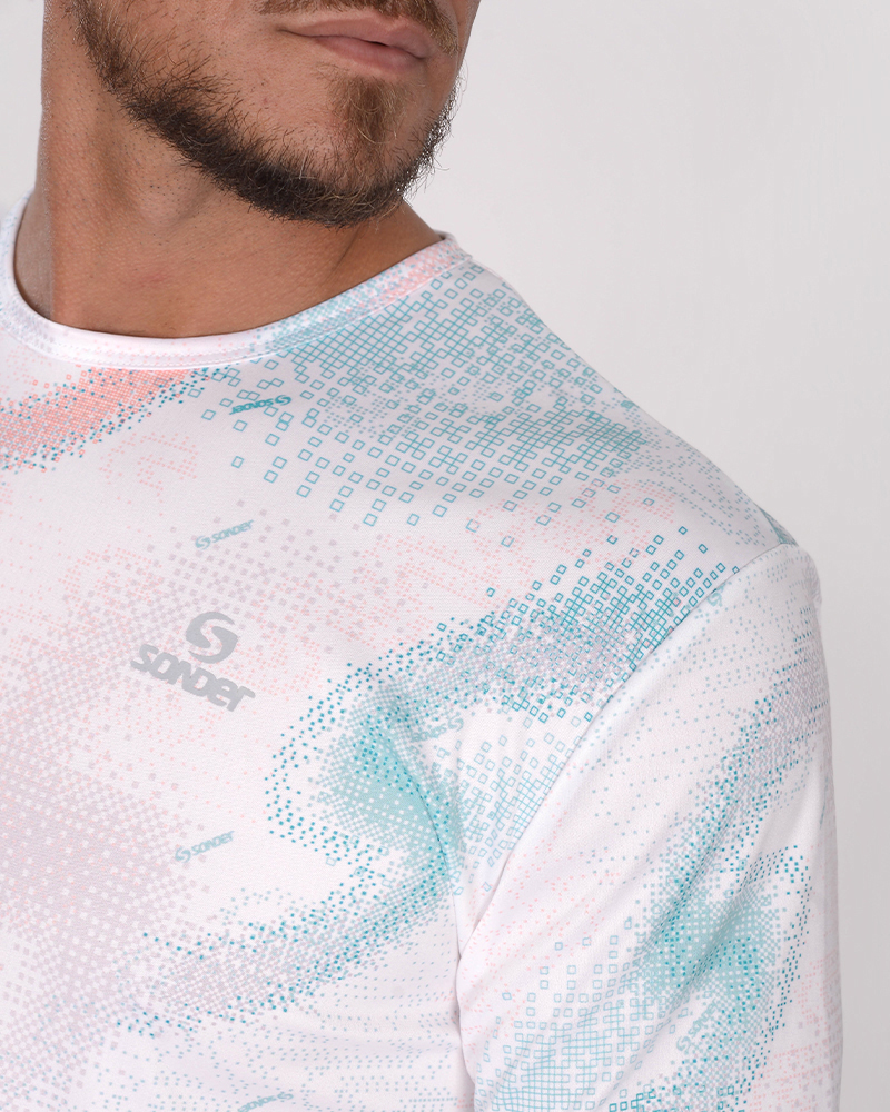 Remera clásica de poliéster Neodry estampado Nexo Blanco. La tecnología del poliéster Neodry permite mayor respirabilidad, rápido secado, confort térmico, color y textura resistentes.