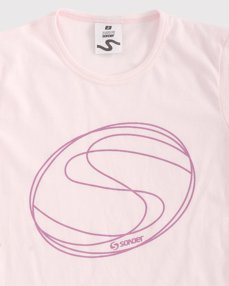 Remera clásica de niña de jersey rosa con estampa.