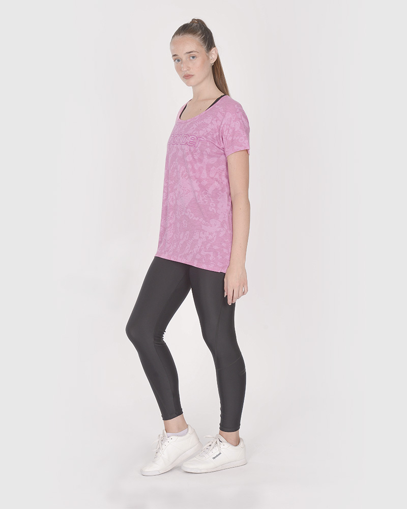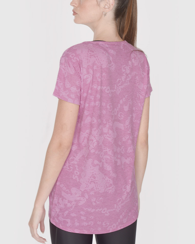 Remerón largo y amplio de jersey liviano estampado Senda Fucsia Melange, con estampa.