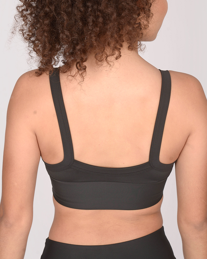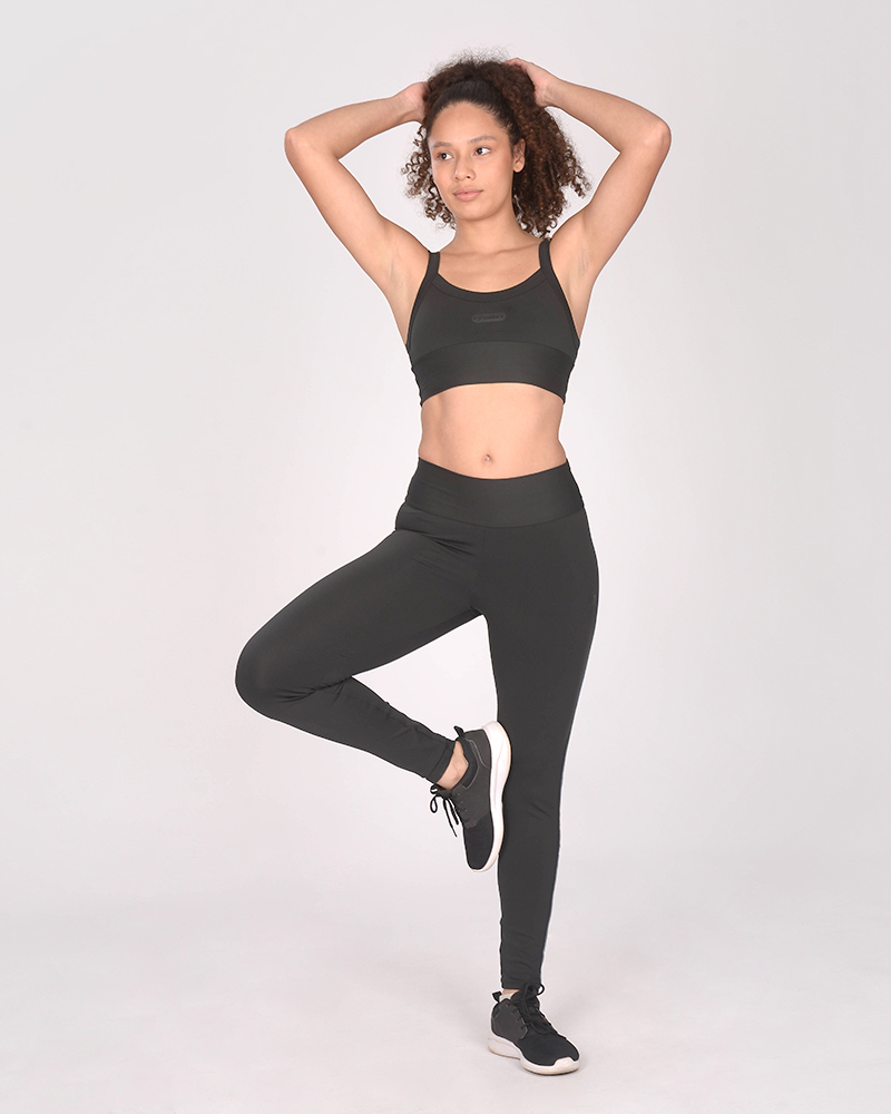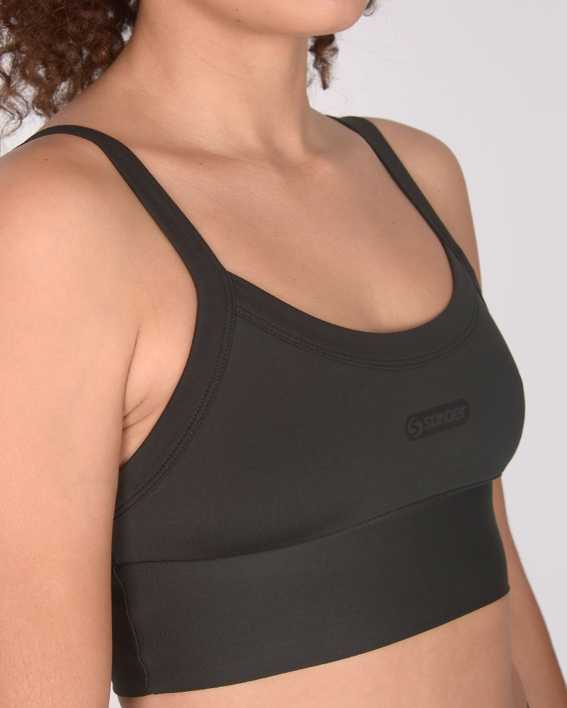 Top clásico de LYCRA opaca transblock negro. Con faja ancha y tiras rectas. La tecnología Transblock es de compresión alta, tacto suave, opaca y de mayor respirabilidad.