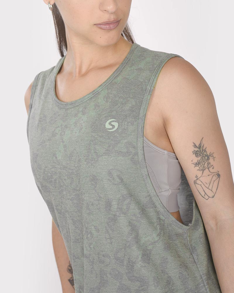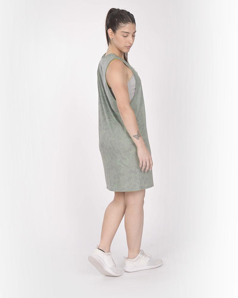 Vestido corto sudadera de jersey liviano estampado Senda Camo.